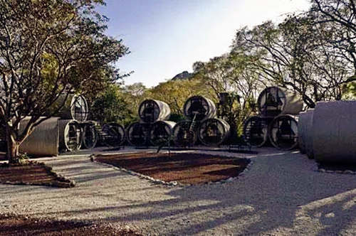 提到住水泥管,我们脑海里想到的通常都是城市里无家可归的人,在寒冷的夜里,住在某个桥洞下废弃的水泥管子里。然而,国外却有人把水泥管改造成了旅馆或饭店,而且收益还不错。比如说墨西哥Tepoztlan郊外的水管旅店(TubeHotel),设计师Andreas Strauss将直径2.4米深3.5米的再生混凝土管设计成了旅馆的房间,摆上一张大床开一个窗户,拉上帘子就能住人了,床板和水泥管之间的空隙则可以用于储物。