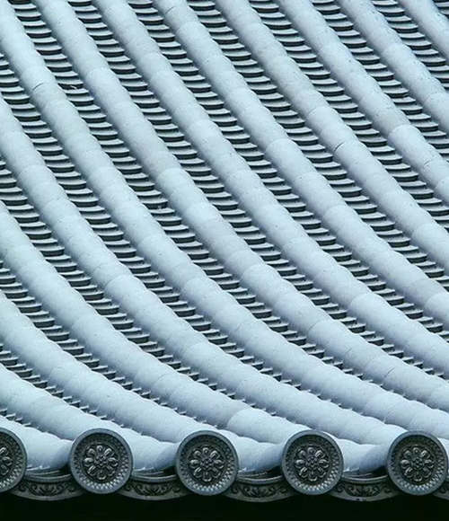 在东方传统建筑中,瓦片是屋顶的必备用材。纵向排列的瓦片,可以让屋面过渡之处平滑而连续,让建筑本身更显挺拔。人们在观赏古建的时候,视线便不自觉地从檐下引向屋面、屋顶直至遥远的天际,给人广阔深远的想象空间。