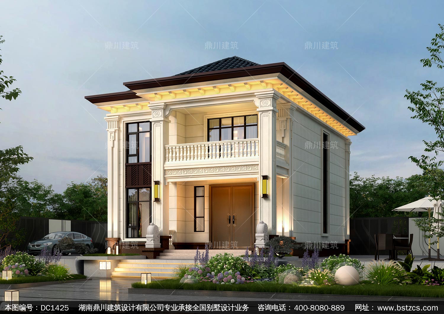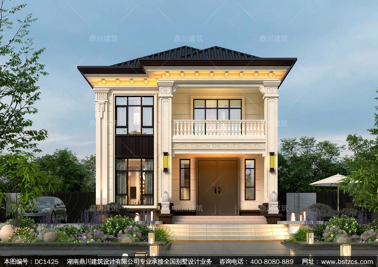 大气新中式二层别墅施工图纸及效果图_农村自建别墅设计,鼎川建