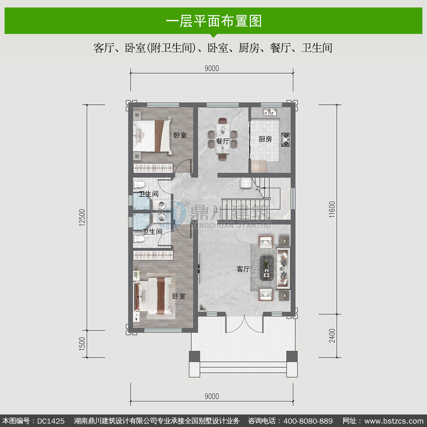 | 编号: DC1425 | 层数: 二层 | 结构形式: 砖混结构 | 主体造价: 35-45万 |