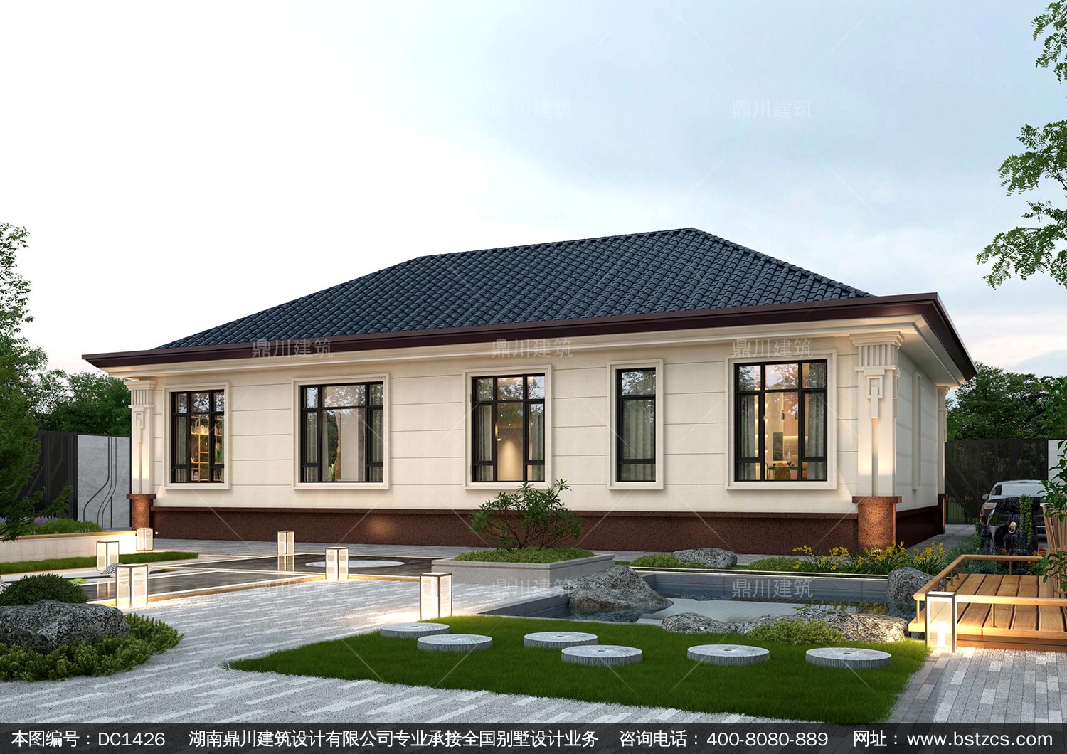 大气新中式一层别墅设计图纸及效果图_农村自建房设计,鼎川建筑