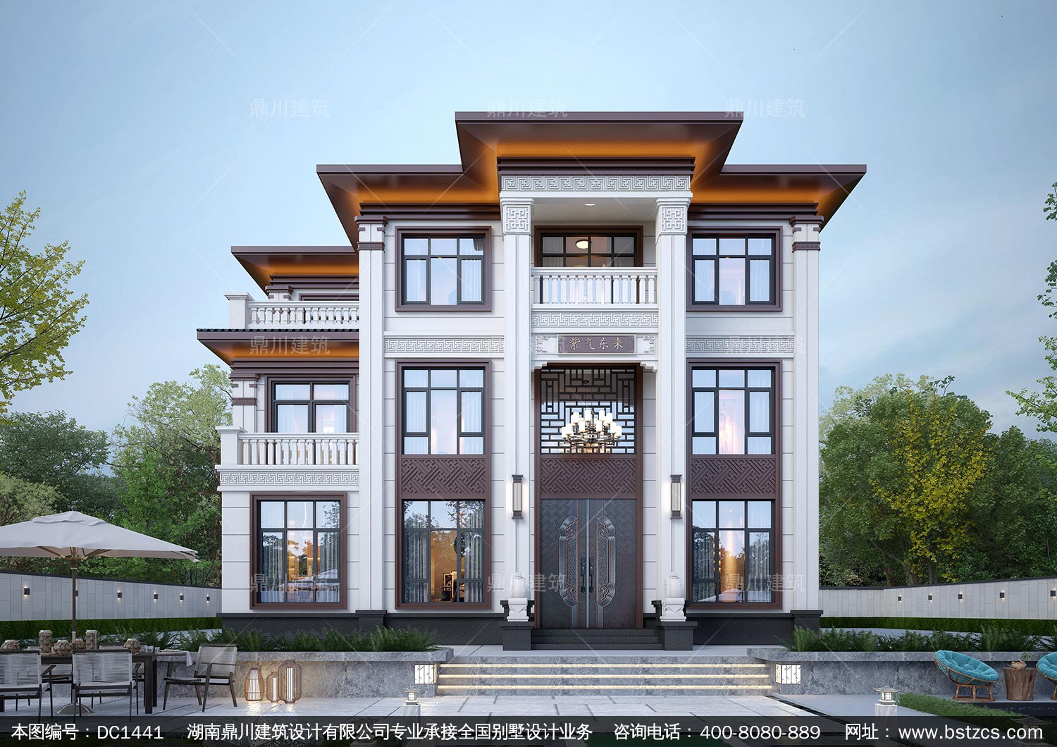大气新中式三层别墅效果图及施工图纸_农村自建别墅设计,鼎川建
