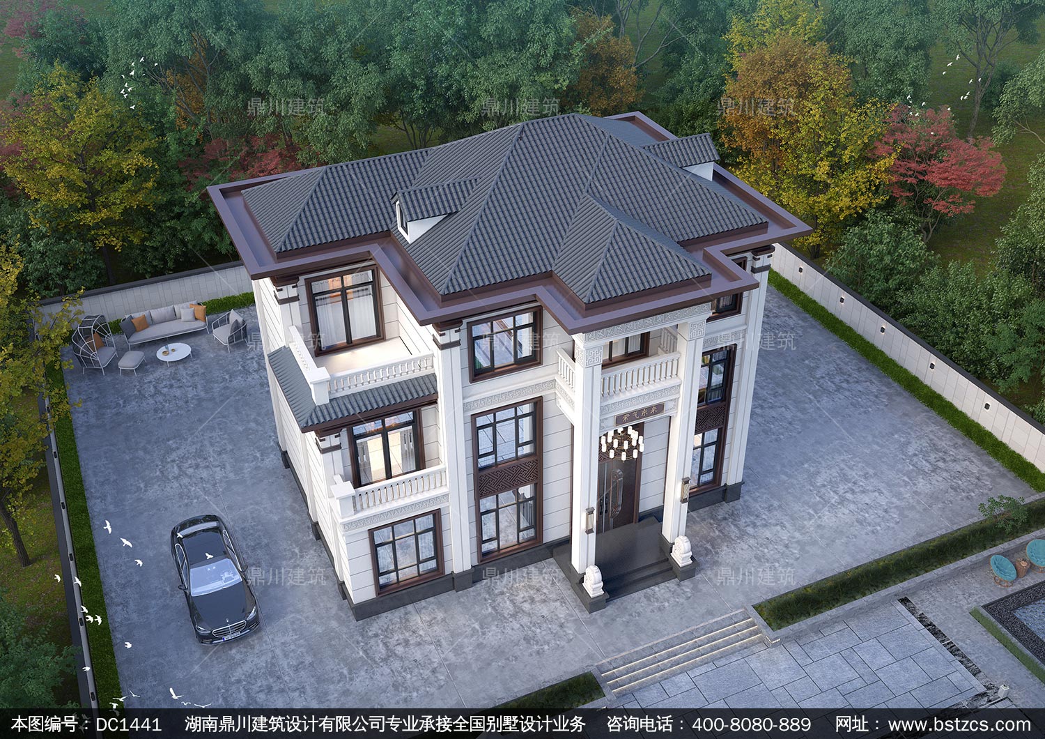 新中式三层复式别墅效果图及施工图纸_农村自建别墅设计,鼎川建