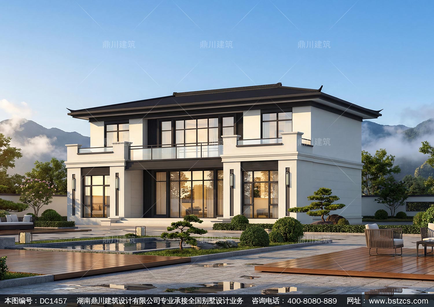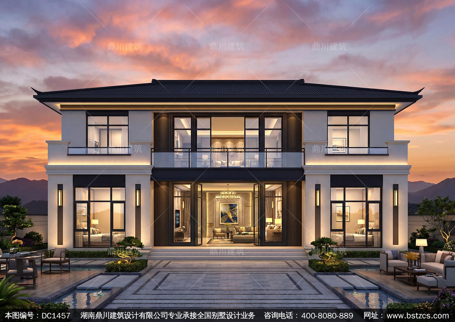 大气新中式二层别墅施工图纸及效果图_农村自建别墅设计,鼎川建