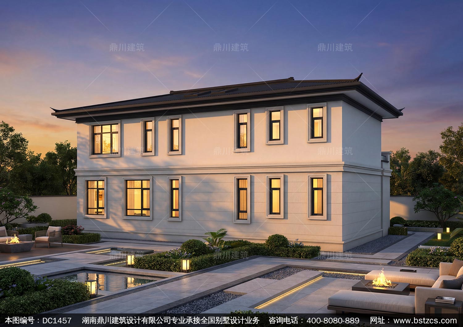 新中式二层别墅施工图纸及效果图_农村自建别墅设计,鼎川建筑